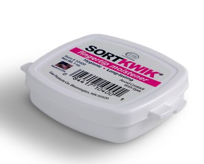 Count cash and sort documents quickly by using this fingertip moistener. Non-toxic and odorless, this specially formulated moistener provides a stain-free, sanitary alternative to licking the fingers. This Lee Sortkwik fingertip moistener comes with a flip-top lid for convenient use.