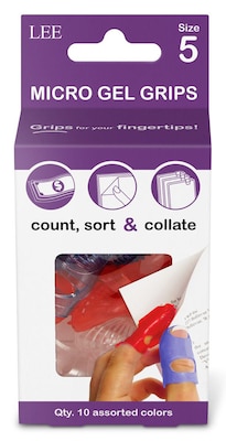 Flip through cash, checks, and documents easily with these assorted-color fingertip grips. Featuring a ventilated design, these Lee Tippi micro gel grips are comfortable to use, and the washable material makes it easy to eliminate odors.