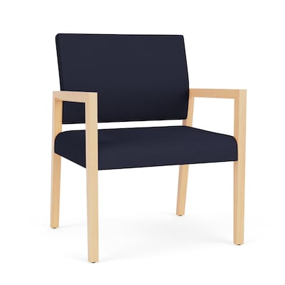 The Brooklyn oversize guest chair with its contemporary geometric styling, distinctive chamfered edge under the armrest, and upholstered seat and back cushions will give your space an elegant, sophisticated look. Features include sturdy hardwood construction, durable lacquer finish, and a comfortable Matrex seat support system. 400 lb. weight capacity.