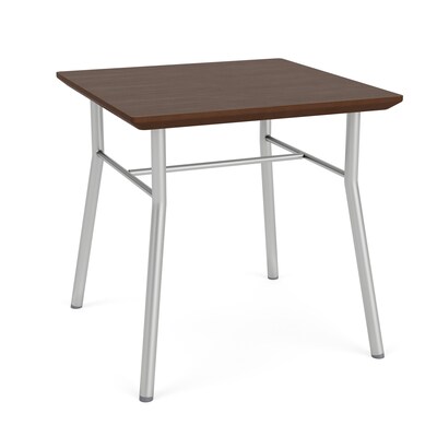 The Chat square end table with laminate top perfectly complements Chat seating. The tabletop surface comes in high-pressure laminate over 1" thick MDF with attractive reverse-bevel edge detail. Sturdy 1" diameter steel legs come in a durable powder coat finish.