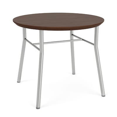 Lesro Chat 24" Dia Laminate Round End Table, Riftwood Walnut/Silver (CX0524.SSV.TRW)