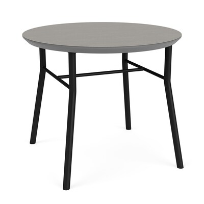 The Chat round end table with laminate top perfectly complements Chat seating. The tabletop surface comes in high-pressure laminate over 1" thick MDF with attractive reverse-bevel edge detail. Sturdy 1" diameter steel legs come in a durable powder coat finish.