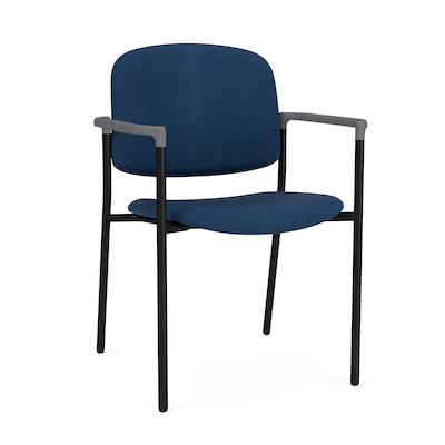 The Chat square back guest chair with upholstered seat and back offers a clean, uncomplicated contemporary look. Featuring powder-coated sturdy steel construction, environmentally friendly soy base foam upholstered seat/back for long-life comfort, easy-to-clean nylon armrests, wallsaver design, stackability, optional casters for mobility, and 300 lb weight capacity.