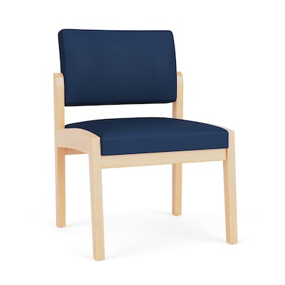 Lesro Lenox Wood Vinyl Guest Chair, Armless, Patriot Plus Imperial Blue/Natural (LW1102.WNA-01PPIB)