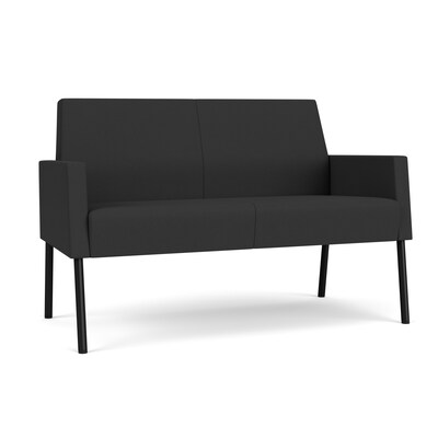 The Mystic Lounge loveseat with its sophisticated, tailored look, offers the ideal balance of style, function, and value for reception areas, home office and lounge seating applications. Features include heavy-duty steel construction, fully-upholstered panel arms and refined tapered back. Available in alluring upholstery options as well as a durable powder coat finish. 600 lb. weight capacity.