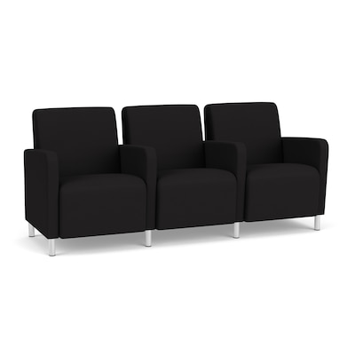 Lesro Ravenna Fabric 3-Seat Lounge Reception Tandem Seating, Open House Black/Brushed Steel (RV3103.FBS-01OHBK)