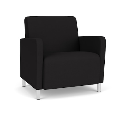 Lesro Ravenna Oversize Fabric Guest Chair, Open House Black/Brushed Steel (RV1201.FBS-01OHBK)