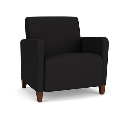 Lesro Ravenna Oversize Fabric Guest Chair, Open House Black/Walnut Wood (RV1201.FWL-01OHBK)