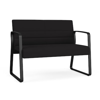 The Waterfall loveseat with sled base, with its soothing yet powerful styling, sloped arm design, and upholstered seat and back cushions will give your space an inviting, welcoming air. Heavy duty steel construction, durable powder-coat finish, ergonomically designed back, and a Matrex seat support system provide long-life comfort in commercial waiting and reception applications. Ideal for medical, educational and healthcare environments. 550 lb weight capacity.