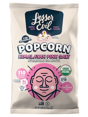 Lesser Evil Snack Organic Himalayan Pink Salt Popcorn, 0.88 oz., 18 Bags/Carton (LSN00141)