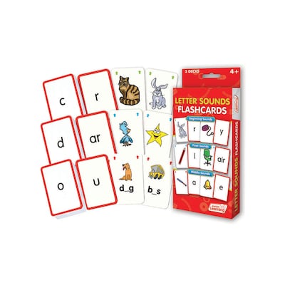 Letter Sound Flash Cards: Beginning sounds, final sounds and middle sounds. 3 flash card sets, 162 cards. Ages 4+.