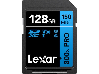 The Lexar High-Performance 800x PRO BLUE Series SDXC UHS-I card is designed for point-and-shoot and mid-range DSLR cameras and HD camcorders. The card offers fast transfer speeds (up to 150MB/s), so you can perfectly capture and quickly transfer high-quality images and 4K UHD video.