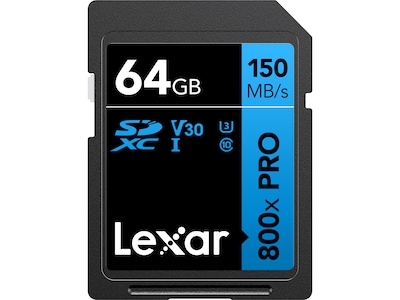 The Lexar High-Performance 800x PRO BLUE Series SDXC UHS-I card is designed for point-and-shoot and mid-range DSLR cameras and HD camcorders. The card offers fast transfer speeds (up to 150MB/s), so you can perfectly capture and quickly transfer high-quality images and 4K UHD video.