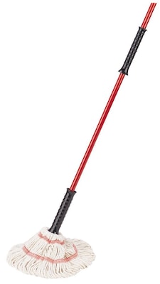 The Libman Big Tornado Mop® (#988) wrings out by a convenient and simple twist-and-lock mechanism. Its cotton/synthetic yarn mix resists bacterial odor, and 3 red bands prevent tangling. The quick release clip makes it easy for mop head change, and the mop head is machine washable and reusable.