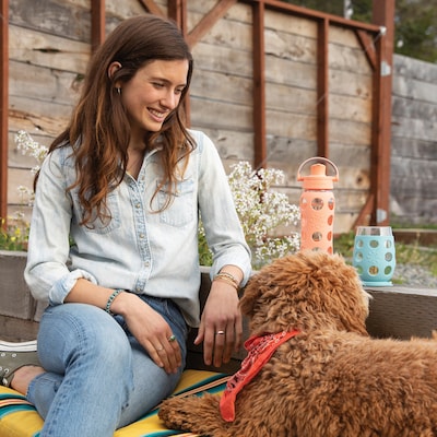 The Lifefactory 22-Oz. Glass Bottle with Active Flip Cap in Cantaloupe is your up-for-anything bottle. Head out for a quick run to the store, to school, or to the gym and hydrate in style. The Active Flip Cap offers a high flow rate for rapid replenishment, so all you need to do is tip and sip. It's ideal for high-intensity activities, but just like you, it's comfortable dialing things down. Plus the pivoting handle makes it easy to take with you.
