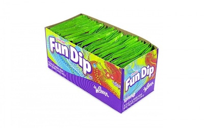 Wonka® Lik M Aid® 0.5 oz Fun dip comes with edible dip stick and an envelope full of fruit flavored sugar powder. Fun dip offers great-tasting dipping fun and is sold as 48 packs per box.