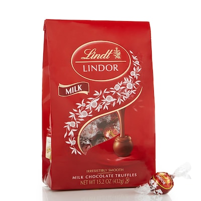 - A 15.2-Ounce pouch of Lindt Lindor Truffles in Milk Chocolate flavors