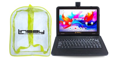 Linsay F10 Series 10.1" Tablet, Wi-Fi, Octa Core, 256GB eMMC, Android 15, with Black Keyboard Case & Backpack (F10IPGKEYBAGPLUS)