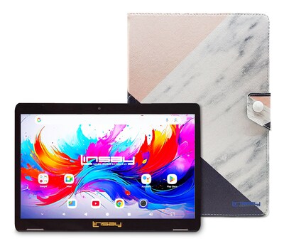 LINSAY F10 Series 10.1" Tablet, Wi-Fi, Octa Core, 256GB eMMC, Android 15, Black Pink White Marble Case (F10IPGCBPWPLUS)