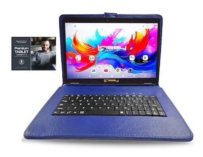 Linsay F10 Series 10.1" Tablet, Wi-Fi, Octa Core, 256GB eMMC, Android 15, with Blue Keyboard Case (F10XIPSBLUESPLUS)