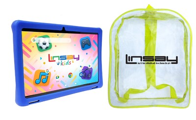 LINSAY F10 Series 10.1" Tablet, Wi-Fi, Octa Core, 256GB eMMC, Android 15, Blue Kids Defender Case & Backpack