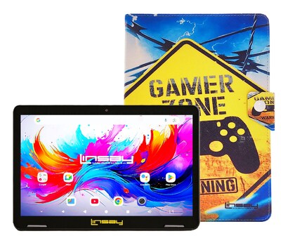 Linsay F10 Series 10.1" Tablet, Wi-Fi, Octa Core, 256GB eMMC, Android 15, with Gamer Case (F10XIPGCGAPLUS)