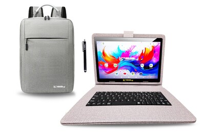 Linsay F10 Series 10.1" Tablet, Wi-Fi, Octa Core, 256GB eMMC, Android 15, with Gray Cloth Keyboard Case, Backpack, & Stylus Pen