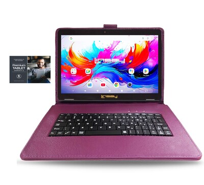 Linsay F10 Series 10.1" Tablet, Wi-Fi, Octa Core, 256GB eMMC, Android 15, with Purple Keyboard Case (F10XIPSPURPLESPLUS)