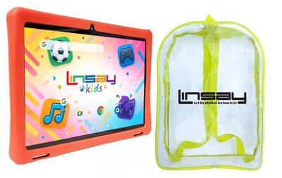 LINSAY F10 Series 10.1" Tablet, Wi-Fi, Octa Core, 256GB eMMC, Android 15, Red Kids Defender Case & Backpack (F10IPGKIDSREBAPLUS)