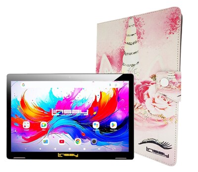 LINSAY 10.1"Octa Core 256GB Storage Android 15 Tablet with Unicorn Shape Case