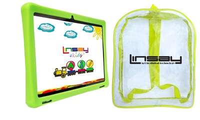 Linsay Octa Core 10.1" Tablet 128GB Storage, Android 15 Bundle with Green Kids Case and Backpack (F10IPGKIDSGREBA)