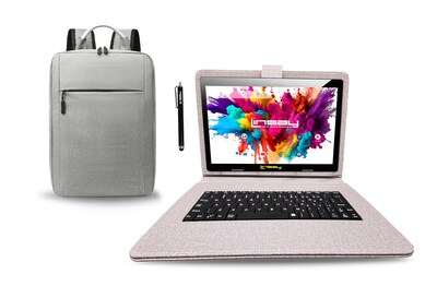 Linsay Octa Core 10.1" Tablet, 128GB Storage, Android 15, Bundled with Cloth Keyboard, Backpack and Stylus Pen (F10XIPGCLOPURBA)