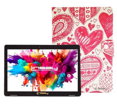 Linsay Octa Core 10.1" Tablet, 128GB Storage, Android 15, Bundled with Love shape Case and Stylus Pen (F10XIPGCLOV)