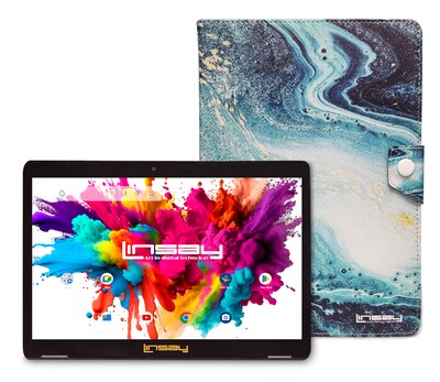 Linsay Octa Core 10.1" Tablet, 128GB Storage, Android 15, Bundled with Ocean Marble Case and Stylus Pen (F10IPGCMOC)