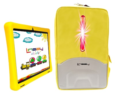 Linsay Octa Core 10.1" Tablet, 128GB Storage, Android 15, Bundled with Yellow Kids Case, Earphones, LED Backpack