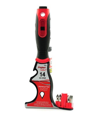 - Versatile tool features a hammer/tool holder 4 screw drivers, can/bottle opener, paint roller cleaner, nail remover, paint lid opener, concave/convex scraper, and crack scraper