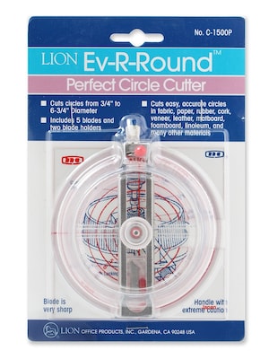 Cut perfect circles in fabric, paper, mat board, cork, leather, veneer, linoleum and most other materials up to 1/4 in. thick. Capable of cutting circles from 3/4 in. up to 6 3/4 in. Works great for yo-yos! Includes 5 blades, 2 blade holders and centering guide. Beam Slide Extender allows cutting of even larger diameter circles in materials up to 1/4 in. thick. Beam extender is 9 in. long and can cut circles up to 15 3/4 in.