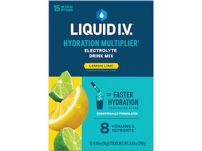 LIQUID I.V. Hydration Multiplier Lemon Lime Electrolyte Drink Mix, 0.56 oz., 15 Sticks/Pack (LVM-1501)