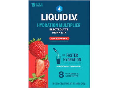 LIQUID I.V. Hydration Multiplier Strawberry Electrolyte Drink Mix, 0.56 oz., 15 Sticks/Pack (LVM-1502)