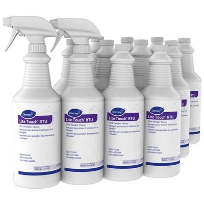 Ammonia- and solvent-free Diversey CRT & Plexiglas cleaner is designed not only to dissipate a static charge, but also to repel dust so that surfaces remain cleaner longer. It can be used on glass, CRT screens/cabinets, clear plastic windows, Plexiglas, bar code scanners, hard floors, countertops, and many other washable surfaces. Lite Touch is an excellent solvent-free glass cleaner. Comes purple in color with no added fragrance.