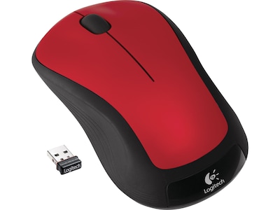 Customize your office computer setup with this Logitech M310 wireless laser mouse, which comes in a bold, red color. The curved sides and rubber grip fit comfortably in hand and highlight the ambidextrous design. A USB nano-receiver allows for plug-and-play operation, providing fast, easy setup. With an 18-month battery life, this Logotech M310 wireless laser mouse delivers reliable, uninterrupted use.