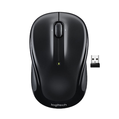 Reduce the clutter on employees' desks with the help of this Logitech M325s black ambidextrous wireless optical mouse. Pre-installed with AA batteries that last up to 18 months, the mouse connects to computers with a small USB receiver. A lightweight and compact design makes the mouse easy to transport, perfect for use with laptop computers in or out of the office. A sleek design gives the mouse a professional appearance ideal for use in a business setting.