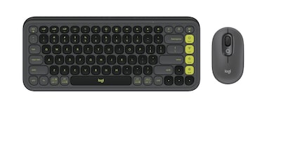 Logitech POP Icon Wireless Keyboard and Optical Mouse Combo, Graphite and Green (920-013103)