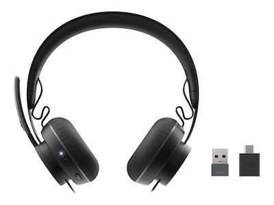 Take control of your acoustic environment with Zone Wireless Plus, the wireless headset specifically designed for busy workspaces. Connect the headset with up to five other Logitech unifying wireless products with a single USB Unifying Receiver, which plugs into the USB-A port on your computer and provides a reliable connection up to 10 meters away even in the busiest workspaces. Easily transition between phone chats, video conferencing, music, and general noise reduction as you wish - all with the same headset and happy-making acoustic performance. With all-day comfort and easy-to-use controls, Zone Wireless Plus is the sound choice for your open workspace. Open workspaces are great for collaboration, but not so great when the noise around you makes it hard to concentrate. Active noise cancellation substantially reduces unwanted ambient sound, so you can get focused and stay focused. Great for Music and Talking with immersive sound for listening to music and a noise-canceling mic that ensures that your voice is heard on the other end of a call - not the noise around you. On ear controls to adjust volume, start/end calls, and trigger Cortana. Plus button controls for power, active noise cancellation (ANC), wireless Bluetooth pairing, and mute on/off or use the flip-to-mute mic feature. Certified for Microsoft Teams ensures it's easy to pick-up or answer Teams meetings, calls, messages, and notifications with a single press to the Teams button. Or apply a longer touch to invoke Cortana voice skills. Designed to be comfortable for use all day, every day. The silicone-padded headband is lightweight and provides just the right clamping force for a great fit. Soft leatherette ear pads are cushiony and breathable, so your ears don't get hot. Connect to your computer and smartphone simultaneously and seamlessly switch between connected devices at will. The 30m (100') wireless range provides freedom to roam while staying connected. Connect up to six Logitech unifying wireless peripherals through a single USB Unifying + Audio receiver. Provides a reliable connection up to 10 m away from mice/keyboards, and up to 30 m away from the headset. Download the Logi Tune App on your smartphone and manage mute, modulate sidetone controls, view charging status, and tweak the 5-band EQ sliders (or choose one of the custom presets), plus download software updates. Whether employees are in the office, at home, or somewhere else, Sync device management software helps everyone stay connected by letting you ensure their Logitech video collaboration devices are healthy and up to date.
