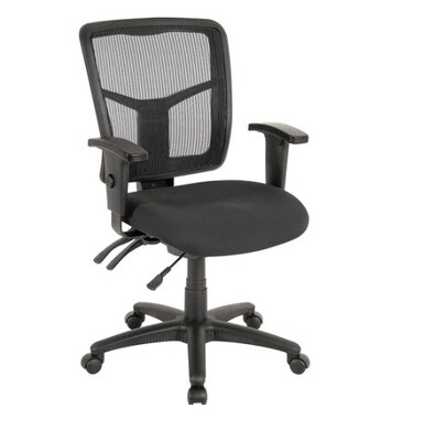 Managerial mid-back chair features a mesh back and mesh fabric seat. Ergonomically designed mid-back matches the natural curvature of a person's back. Arms adjust in height and width. Mid-back chair also offers a five-star nylon base, pneumatic seat-height adjustment (17" to 21" high from the floor), 360-degree swivel, back-height adjustment, tilt and asynchronous three-lever control. Frame is available in black only. Chair meets the CA117 fire-retardant standard and offers an abrasion rating of 60,000 double rubs (ASTM-D-4175).