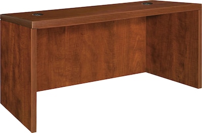 Rectangular desk shell is part of Lorell Essentials Series Laminate Furniture with high-quality laminate construction and metal-to-metal, cam-lock connections. Cherry laminate top is 1" thick for durability. Use the two grommet holes in the top for easy cord routing. Design also includes a full modesty panel for privacy, 3mm PVC edges and adjustable feet.