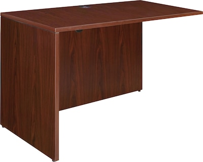 Rectangular return shell is part of Lorell Essentials Series Laminate Furniture with high-quality laminate construction and metal-to-metal, cam-lock connections. Use with a desk to create L-shaped configurations. Mahogany laminate top is 1" thick for durability. Use the grommet hole in the top for easy cord routing. Design also includes a full modesty panel for privacy, 3mm PVC edges and adjustable feet.