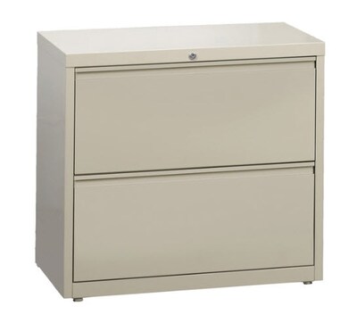 36" wide lateral file features two versatile drawers with hanging file rails for side-to-side filing in letter-size, legal-size or A4-size. Each drawer has a magnetic label holder for easy identification where you need it. Design also features a core-removable lock for security, dual locking bars, full-width pull, ball-bearing slide suspension for smooth opening and closing, reinforced base, and four adjustable leveling guides for stabilization. Interlock system prohibits the extension of more than one drawer at a time for your safety. Counterweight prevents tipping. Lateral file meets or exceeds applicable ANSI/BIFMA standards.