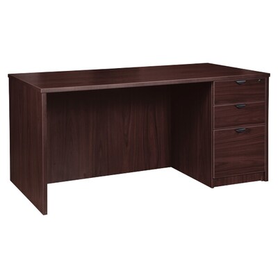 This right-pedestal desk is part of the elegant, Lorell Prominence 2.0 Series that is perfect for your executive office suites. Pair with single-pedestal desks, returns and bridges to create L-shaped and U-shaped configurations. Durable, Espresso laminate surface is mar-resistant, burn-resistant and impact-resistant to withstand hectic, daily work life. The 1" thick top features matching 3mm edge banding. Desk is made with 45 lb. density particleboard and finished on both sides with high-performance, thermally fused melamine. 72" wide desk features a full modesty panel for privacy, two grommets in top and a full pedestal with locking drawers to secure files and supplies. Pedestal includes two box drawers for supplies and one file drawer for letter-size or legal-size hanging files with included hangrails. Box and file drawers have 100 lb. full-suspension, ball-bearing slides. The 3/4" adjustable glides allow desk to remain level on uneven surfaces. Desk ships fully assembled.