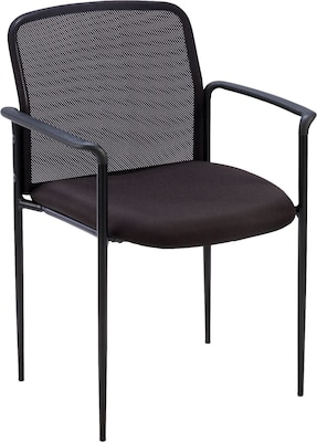 Reception side chair features a mesh back, molded plastic arms and painted, tubular steel frame with four stylish legs. Seat offers a waterfall design for comfortable seating. Stack up to four high. Reception chair holds up to 250 lb. on the 1.5mm thick frame.